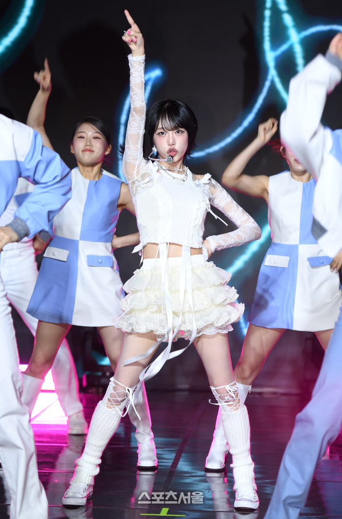 가수 최예나(YENA)가 30일 서울 강남구 일지아트홀에서 열린 세 번째 싱글 앨범 ‘네모네모’ 미디어 쇼케이스에서 공연을 하고 있다.