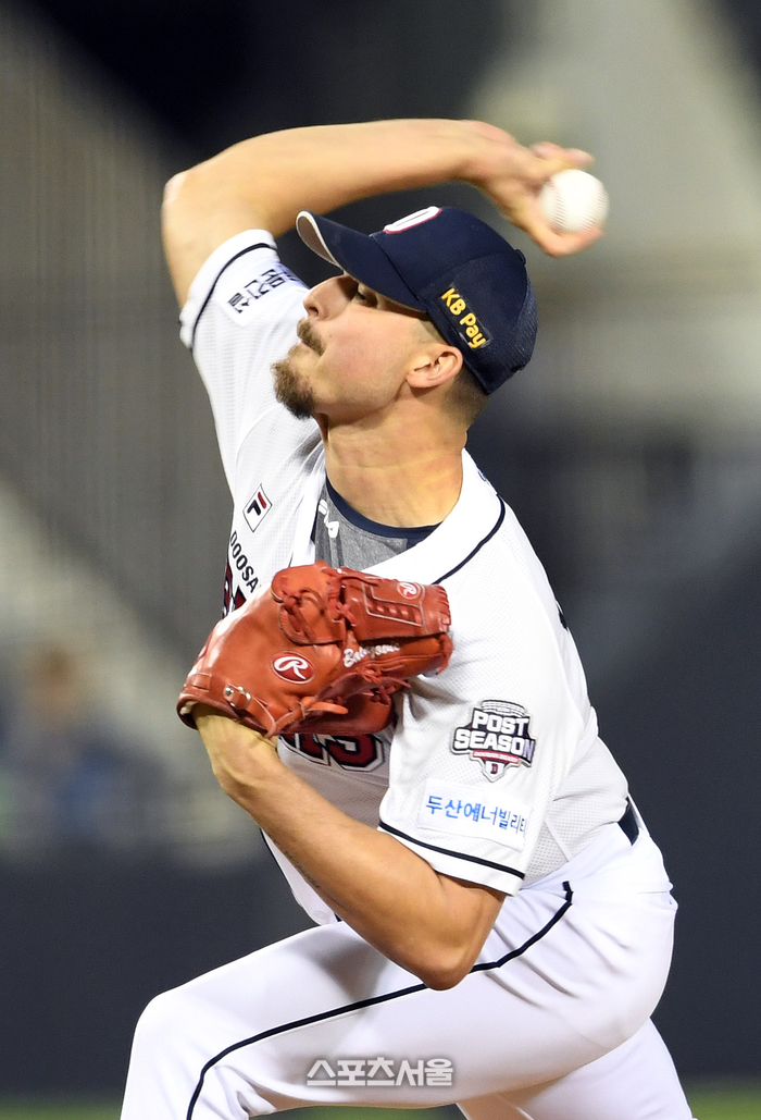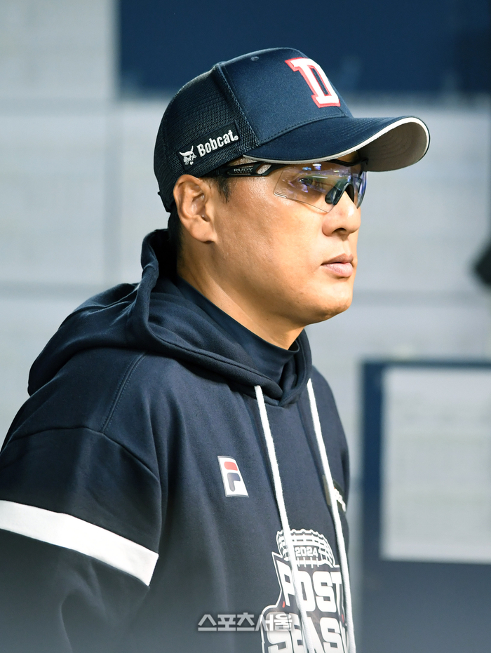 두산은 2일 잠실구장에서 열린 KT와 와일드카드 결정전 1차전에서 0-4로 졌다. 결과에서 드러나듯 타선이 지독히 침묵했다. 2회부터 5회까지 4이닝 연속 무안타. 정수빈과 허경민이 나란히 2안타를 쳤지만 득점권에서는 모두 끝까지 침묵했다. 선발 곽빈도 1이닝 4실점하며 지난해 와일드카드 결정전 부진에서 빠져나오지 못했다.