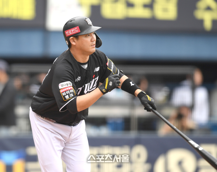 3번 장성우가 타석에 섰다. 초구 볼을 골랐고, 2구에 배트를 냈다. 큼지막한 우익수 뜬공이 됐다. 로하스가 3루까지 이동하기 충분한 비거리가 나왔다. 1사 3루. 홈이 더 가까워졌다.
