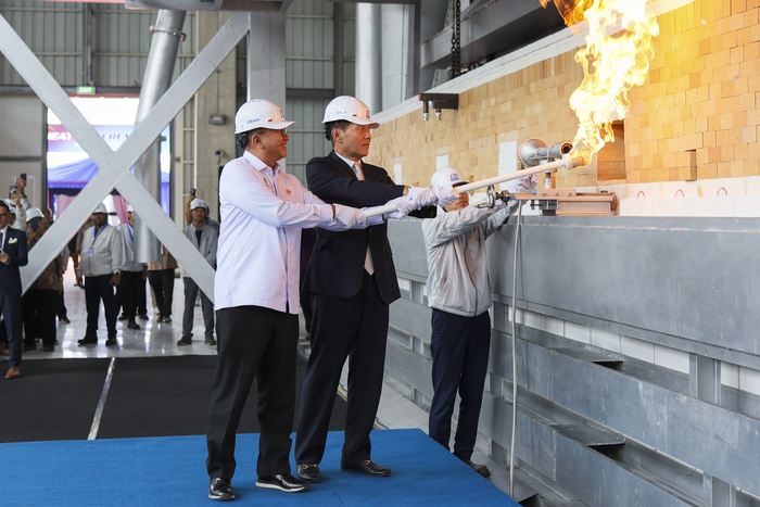 [스포츠서울 | 배우근 기자] 국내 대표 종합 유리 기업 KCC글라스(대표 정몽익)는 지난 3일(현지시간) 인도네시아법인의 유리 생산 공장인 바탕공장을 완공하며, 용융로(熔融爐)에 불씨를 넣는 화입식 행사를 진행했다.