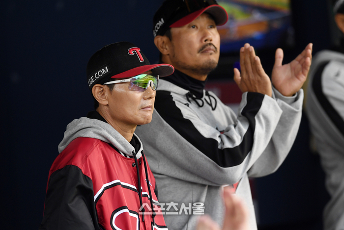 LG 염경엽 감독이 6일 잠실구장에서 열린 2024 KBO리그 KT와의 준플레이오프 2차전에서 선수들의 플레이를 지켜보고 있다. 2024. 10. 6.