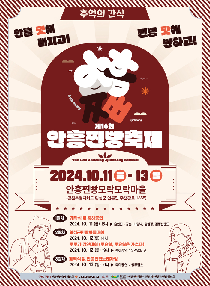 [스포츠서울ㅣ김기원기자]‘제16회 안흥찐빵축제’가 오는 11일부터 13일까지 3일간 횡성군 안흥면 안흥찐빵모락모락마을 일원에서 개최된다.