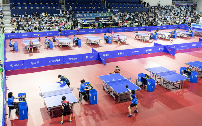 [스포츠서울 | 배우근 기자] 故 조양호 한진그룹 선대회장의 호를 딴 ‘일우(一宇)배 전국 탁구대회’가 지난 5~6일 이틀간 인천 계양체육관에서 열렸다.