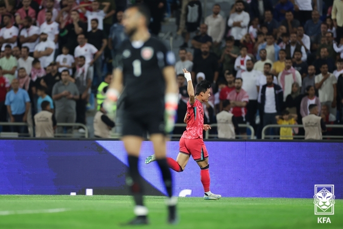 보란듯이 후반 23분 배준호(스토크시티)의 패스를 받아 페널티에어리어 왼쪽에서 헛다리 드리블로 요르단 수비를 따돌린 뒤 강력한 오른발 슛으로 골망을 흔들었다.