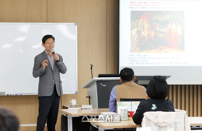 〔스포츠서울│용인=좌승훈기자〕이상일 용인특례시장은 10일 명지대학교 창조관에서 제7기 용인시 핵심 리더 과정 교육생 24명을 대상으로 ‘문학, 역사, 미술의 사례로 생각해 보는 리더십의 조건’이란 주제의 특강을 진행 했다.