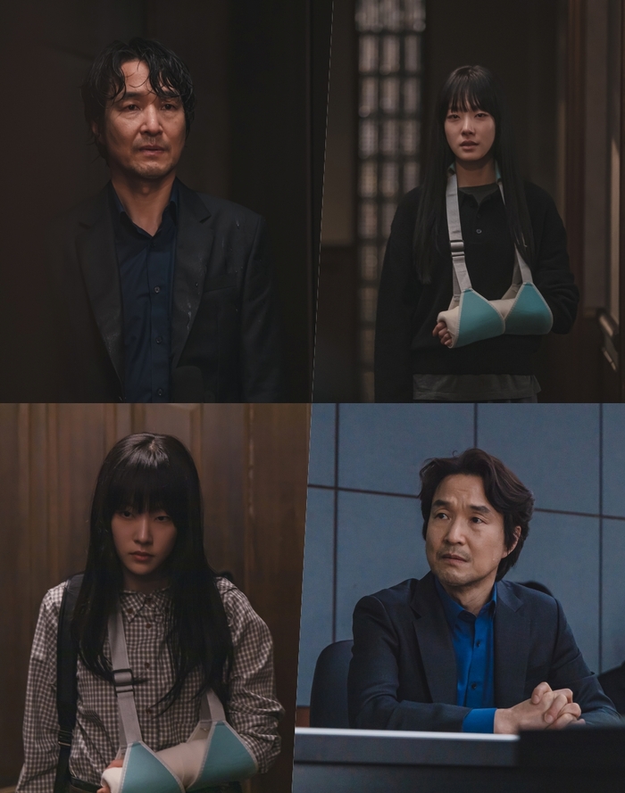 이런 가운데 공개된 2회 스틸컷에는 딸을 향한 의심과 믿음의 기로에서 처절해지는 장태수의 모습이 담겨 있다. 딸의 비밀을 캐기 위해 비를 맞으며 돌아다닌 모습, 경찰서 회의에서 마음을 졸이며 사건 브리핑을 받고 있는 모습이 불안감을 더한다. 특히 빗물에 젖은 것인지 눈물에 젖은 것인지 모를 슬프고도 괴로운 얼굴을 한 태수의 모습이 시선을 강탈한다. 딸을 향한 태수의 먹먹한 눈빛이 그가 무엇을 알아낸 것인지 궁금증을 자극한다.