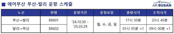 [스포츠서울 | 배우근 기자] 에어부산은 10월 30일 첫 취항하는 부산-발리 노선을 기념해 부산-발리 노선 항공권 특가 프로모션을 실시한다.