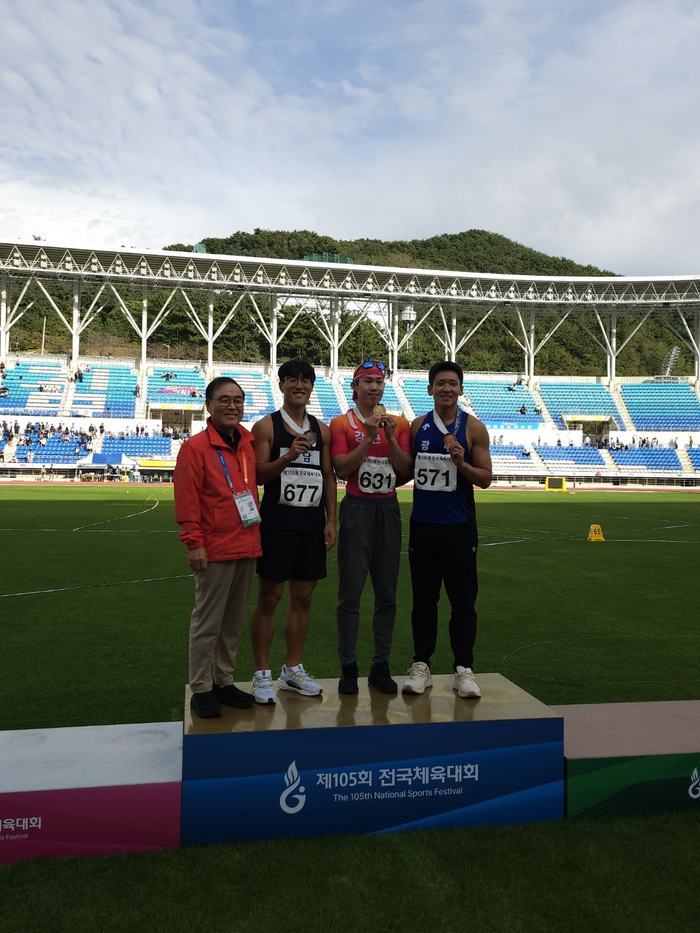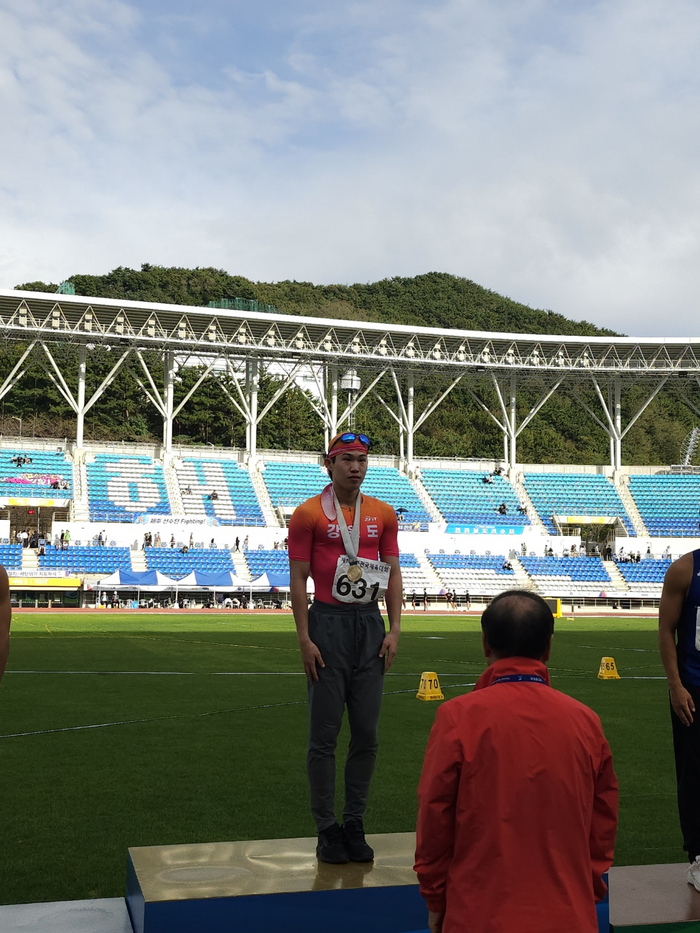 [스포츠서울ㅣ김기원기자]제105회 전국체육대회에 출전 중인 속초시청 육상팀 소속 박원진 선수가 10초22의 개인 신기록을 세우며 육상 남자일반부 100m 금메달을 획득했다.