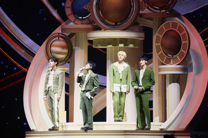 ‘우리의 새벽은 낮보다 뜨겁다’, 한국어 버전의 ‘낫 어론’으로 공연장을 훈훈하게 달군 이들은 특유의 유쾌한 매력이 돋보이는 뮤지컬 섹션으로 분위기를 고조시켰다. 캠핑카를 타고 여행을 떠난 멤버들이 우연히 뒤틀린 시공간에 빠졌다는 콘셉트가 ‘어쩌나’ ‘스냅 슛’ ‘음악의 신’ ‘홈’ 등 경쾌한 매력을 한층 끌어올렸다. 멤버들은 “많은 것들이 변했지만 캐럿들을 향한 마음은 변하지 않았다”고 외쳤다.