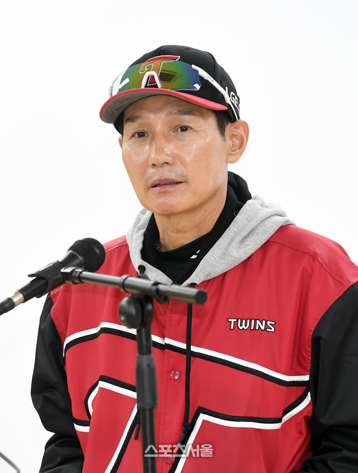 LG 염경엽 감독이 14일 대구 삼성라이온즈파크에서 열릴 예정인 2023 KBO리그 삼성과의 플레이오프 2차전이 우천 순연된 가운데 인터뷰를 하고 있다. 2024. 10. 14.