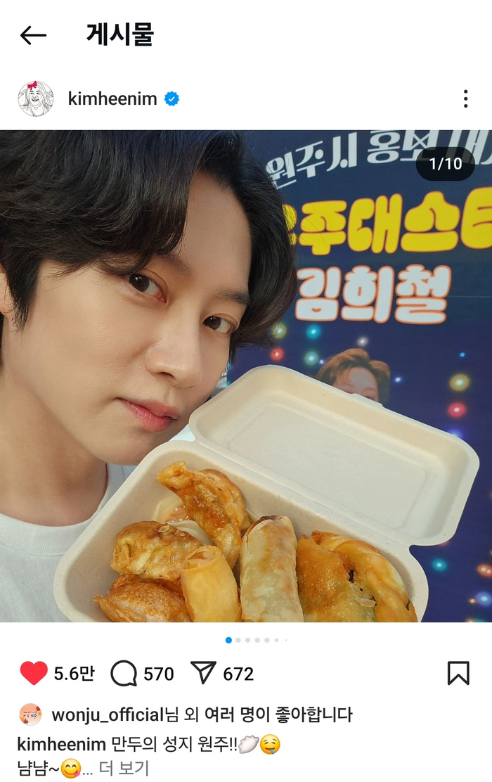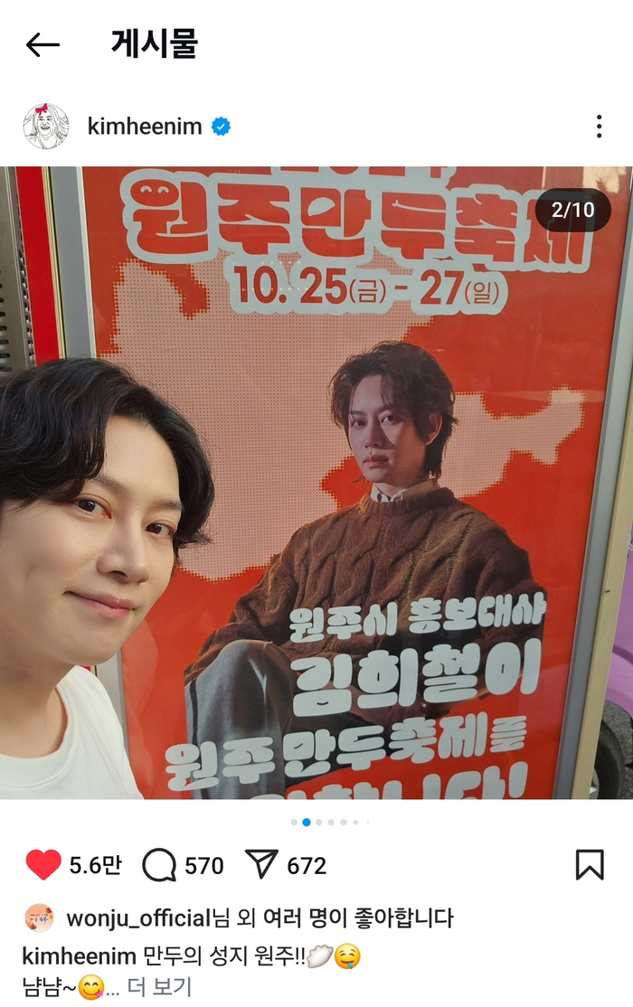 [스포츠서울ㅣ원주=김기원기자]2024년 제2회 원주만두축제를 홍보하는 원주시 홍보대사 김희철의 SNS 게시물의 반응이 뜨겁다.