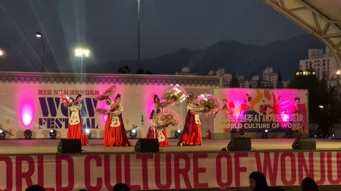 원주시 댄싱공연장 주차장 일원에서 열린 ‘제2회 원주시 세계문화축제’는 ‘WOW festival(World culture Of Wonju)’를 주제로 세계문화공연, 전통놀이, 의상 체험과 더불어 세계 각국의 다양한 음식을 경험할 수 있는 다채로운 행사로 진행됐다.