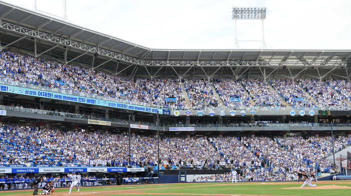 한국야구위원회(KBO)는 오후 1시53분 “플레이오프 2차전 2만3550석이 매진됐다”고 발표했다. 경기 시작 4시간도 더 남은 상황에서 만원사례 확정이다. 이로써 이번 포스트시즌은 전 경기 매진 행진을 이어갔다.