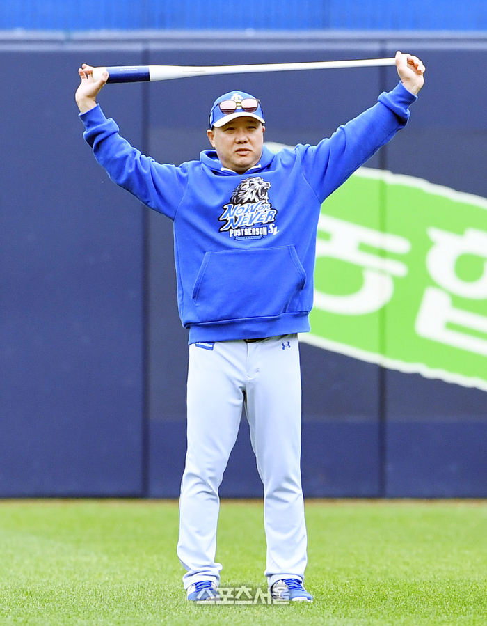 삼성 박진만 감독이 15일 대구 삼성라이온즈파크에서 열리는 2024 KBO리그 LG와의 플레이오프 2차전에 앞서 선수들의 훈련을 지켜보고 있다. 2024. 10. 15.