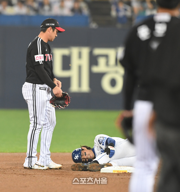 심지어 구자욱도 없다. 2차전에서 2루 도루 과정에서 왼쪽 무릎 내측 인대 미세손상 부상을 당했다. 1회말 다쳤고, 바로 교체됐다. 3~4차전은 출전이 어렵다. 상태에 따라 더 뛰지 못할 수도 있다. 정규시즌 타율 0.343, 33홈런 115타점 타자가 없다.