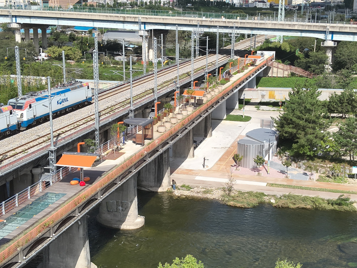 이를 위해 시는 지난 2022년 3월 선정된 ‘철도 유휴부지 활용사업’ 공모사업을 본격 추진, 사업비 12억 원을 투입하여 길이 265m, 폭 5m 규모의 폐철교(북평동 281번지 일원)를 산책로, 쉼터, 장미터널, 전망대, 경관조명 등 편의시설을 갖춘 테마 휴식공간으로 탈바꿈했다.