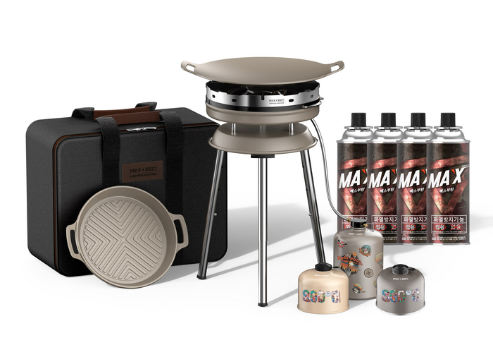 이번 콜라보 상품 중 하나인 ‘맥스 X 800도씨 더 칸 버너 & 그리들 세트’는 버너∙그리들 등 총 6가지의 캠핑 아이템으로 구성됐다.