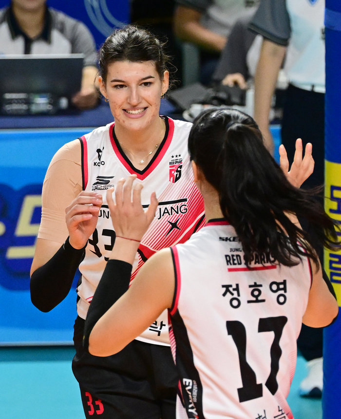 강 감독이 가장 경계하는 팀은 높이에 강점이 있는 정관장이다. 정관장은 부키리치(198㎝), 정호영(190㎝), 박은진(187㎝), 메가(185㎝), 표승주(182㎝)를 보유한 장신 군단이다. 지난 컵 대회에서도 결승에 올라 현대건설과 격돌했다. 새 시즌의 다크호스로 꼽힌다.