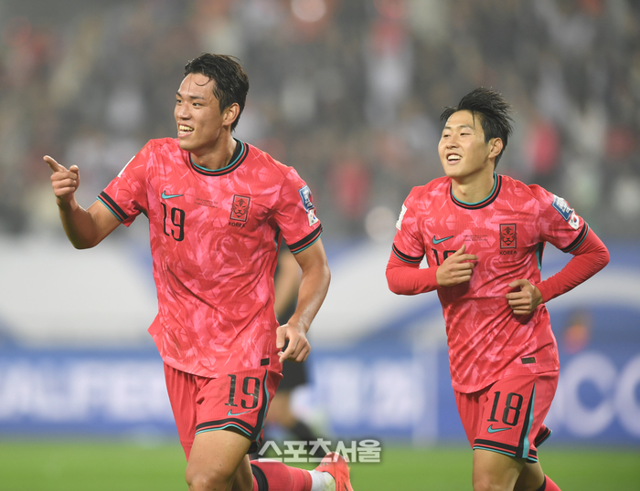 배준호는 홍 감독이 부임 초기부터 손흥민(토트넘)을 대체할 수준의 재능으로 여겼다. 또 이달 애초 공격진에 타깃형 골잡이 이영준(그라스호퍼) 발탁을 고려하다가 벨기에에서 컨디션을 끌어올린 오현규를 선택했다. 배후 침투 능력을 지닌 그의 유형이 이번 2연전에 더 맞다고 본 것인데 예상대로 적중했다. 여기에 오세훈(25·마치다)도 이라크전에서 A매치 데뷔골을 넣으면서 홍 감독을 웃게 했다.