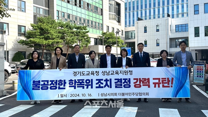 〔스포츠서울│성남=좌승훈기자〕성남시의회 더불어민주당협의회는 성남 한 초등학교에서 수개월 간 동급생들로 부터 괴롭힘을 당한 사건과 관련 16일 긴급 기자회견을 열고 “성남교육지원청의 불공정한 학폭위 조치 결정을 강력히 규탄하고, 피해 학생의 권리 보호와 공정한 대책을 마련”하라고 촉구했다.