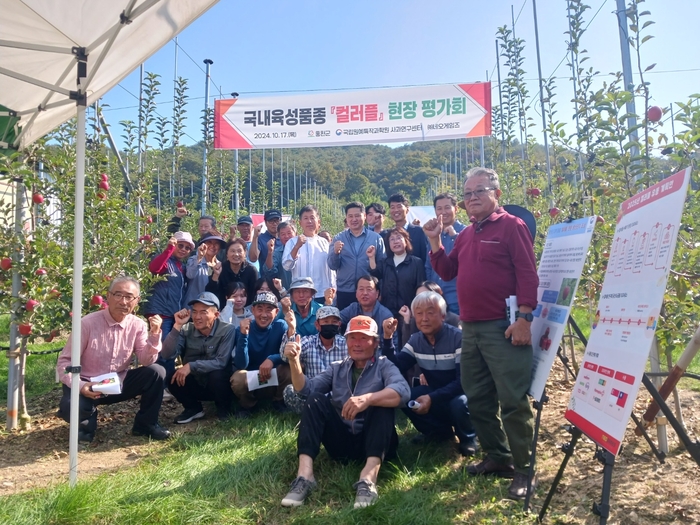 [스포츠서울ㅣ김기원기자]홍천군농업기술센터(소장 문명선)는 10월 17일 농촌진흥청 국립원예특작과학원 사과연구센터, ㈜네오게임즈와 함께 컬러플 사과의 우수성을 알리고 확대 보급하기 위해 컬러플 사과원에서 홍천군 사과 재배 농업인들을 대상으로 컬러플 현장평가회를 추진했다.