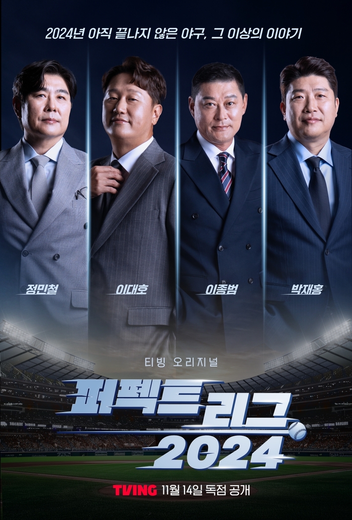 이종범, 정민철, 박재홍, 이대호 등 ‘리빙 레전드’ 4인이 모여, 올시즌 끝나지 않은 야구 이야기를 풀어간다. 야구의 A부터 Z까지 모든 것을 파헤친다는 후문. 티빙 오리지널 스포츠 시리즈 ‘퍼펙트 리그 2024’가 야구팬들의 심박수를 높이고 있다.
