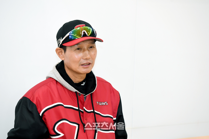 LG 염경엽 감독이 17일 잠실구장에서 열린 2024 KBO리그 삼성과의 플레이오프 3차전에 앞서 취재진과 인터뷰를 하고 있다. 2024. 10. 17.