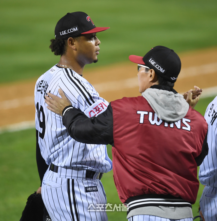 사실 오늘 교체 타이밍을 고민했다. 임찬규를 더 끌고 갈까 했다. 하지만 6회초 윤정빈 디아즈가 찬규와 타이밍이 맞아서 좀 더 빠른 교체를 했다. 찬규로 더 가면 에르난데스 투구수를 줄일 수 있었다. 내일 비까지 오면 더 좋은 상황이기는 하다. 그래도 오늘 이기는 게 더 중요해 빠른 투수 교체를 했다.
