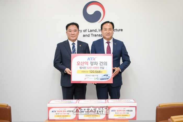 그러면서 수원발KTX 오산역 정차와 관련해 지난해 말부터 올해 초까지 3개월간 추진한 ‘KTX 오산역 정차건의 범시민 서명운동’ 12만568명의 서명부를 전달했다.