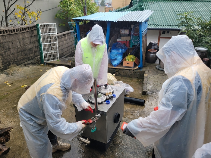 [스포츠서울ㅣ김기원기자](사)더불어 살아가는 예쁜집 꾸미기 봉사단(회장 박국배)은 10월 19일(토)에 속초시자원봉사센터(센터장 하종수)와 함께 속초관내 에너지 취약세대를 대상으로 노후보일러(연탄보일러 1가구, 기름보일러 1가구) 교체 봉사활동을 진행했다.