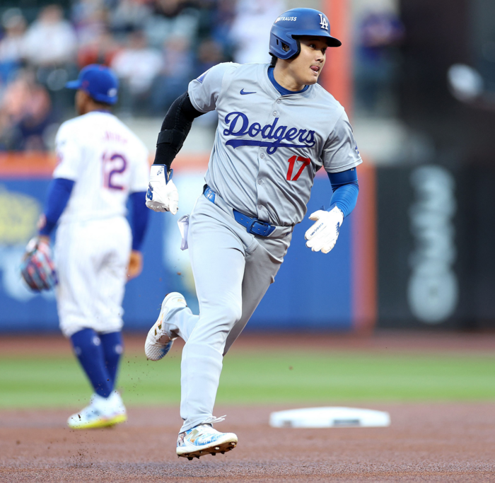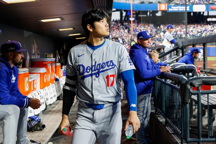 19일 뉴욕 퀸스의 시티필드에서 열린 NLCS 5차전에 1번 타자로 선발 출전한 오타니는 1회 안타치고 출루했다. 이어 무키 베츠의 안타로 무사 2,3루 상황이 만들어졌다.