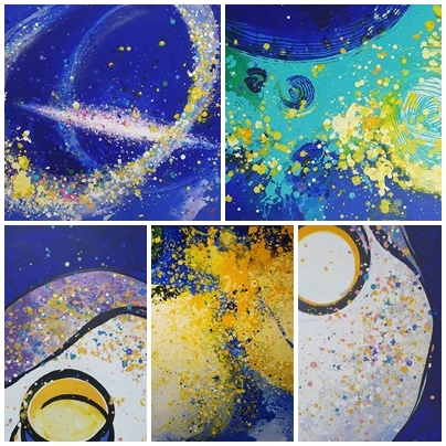 김 작가는 “우주의 공간을 대신할 수 없지만, 바닦에 놓여진 대형 캔버스 천 위에서의 작업은 다양한 색채의 점들로 뿌려지거나 놓여진 점들이 서로가 모인다. 그것들이 다시 면이 돼 우주로 이어낸다”며 “시간의 흐름에 따라 겹치고 겹쳐진 공간은 더 깊은 무한함을 보인다”고 작품을 소개했다.