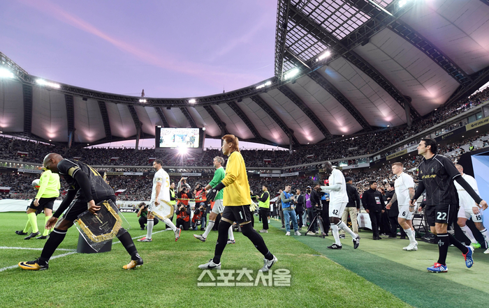 20일 서울월드컵경기장에서 열린 FC 스피어와 쉴드 유나이티드의 ‘2024 넥슨 아이콘 매치’에 앞서 양 팀 선수들이 그라운드로 입장하고 있다. 2024. 10. 20.