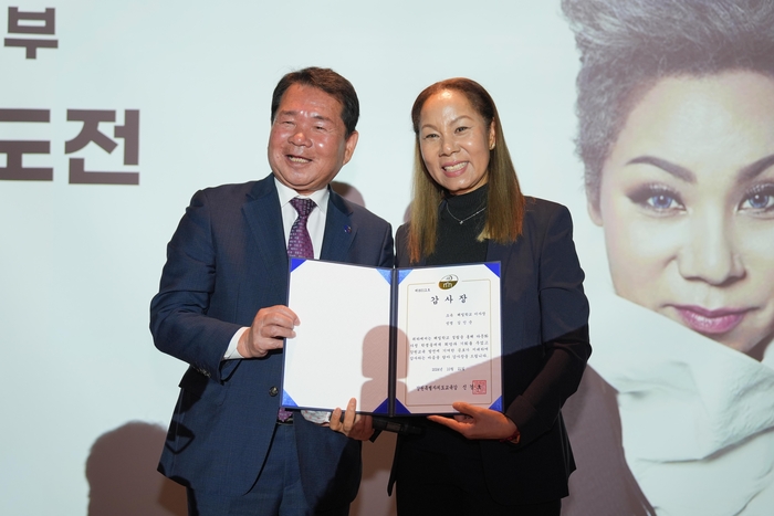[스포츠서울ㅣ춘천=김기원기자]강원특별자치도교육청(교육감 신경호)은 21일(월) 대한사립학교교장회 2024 하반기 연수 및 총회에서 홍천군 소재 다문화 대안학교인 해밀학교 김인순(가수 인순이) 이사장에게 감사장을 전달했다.