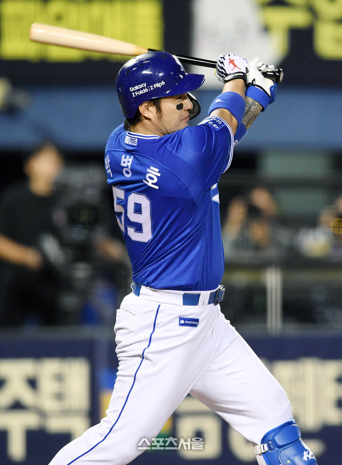플레이오프 4차전 홈런을 때린 강민호가 4번이다. 감이 썩 좋지 않은 박병호가 6번으로 내려갔다. 상대 선발이 우투수 네일이기에 윤정빈과 류지혁도 명단에 포함됐다. 아래는 박진만 감독과 일문일답.