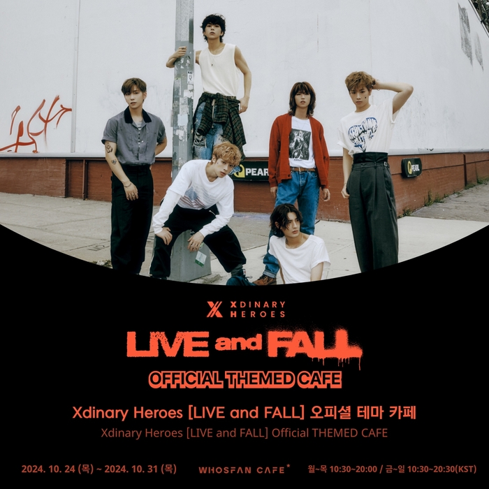 23일 (주)한터글로벌에 따르면 엑스디너리 히어로즈가 다섯 번째 미니앨범 ‘LIVE and FALL’ 발매를 기념해 24일부터 후즈팬카페 명동점에서 오피셜 테마카페를 운영한다.
