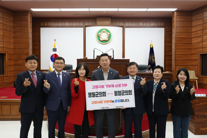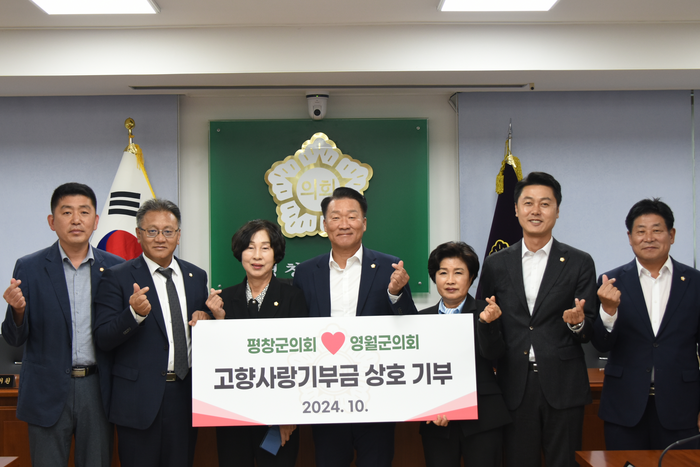 [스포츠서울ㅣ김기원기자]평창군의회(의장 남진삼)와 영월군의회(의장 선주헌)는 23일, 고향사랑기부제 활성화와 지역 간 상생발전을 위한 고향사랑기부금 상호기부를 진행했다.