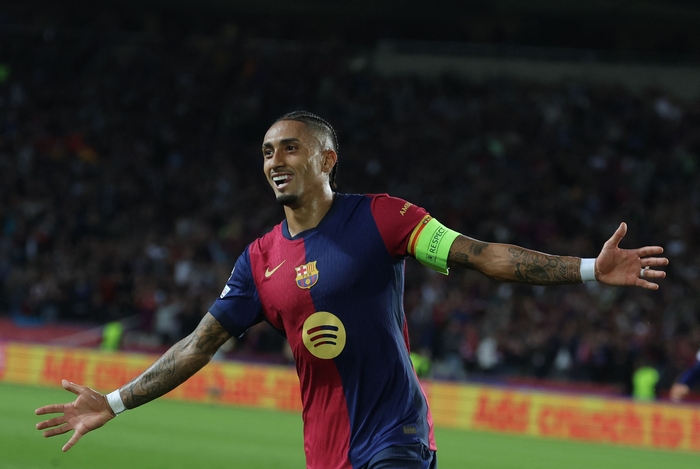 바르셀로나의 하피냐는 24일(한국시간) 스페인 바르셀로나의 에스타디 올림픽 루이스 컴파니스에서 열린 바이에른 뮌헨과의 2024~2025 유럽축구연맹(UEFA) 챔피언스리그 리그 스테이지 3차전 경기에 선발 출전해 해트트릭을 달성하며 팀의 4-1 대승을 이끌었다.