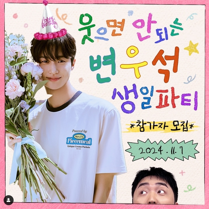 유병재는 24일 ‘웃으면 안 되는 변우석 생일파티 참가자 모집’ 공지와 함께 오는 11월7일 파티를 예고했다. 변우석은 앞서 지난 7월 서울 팬미팅 당시 70만명이 동시접속할 만큼 폭발적인 스타성을 보여온 터라 생일파티 역시 뜨거운 관심을 모았다. 1991년생인 변우석은 오는 31일 33세 생일을 맞는다.