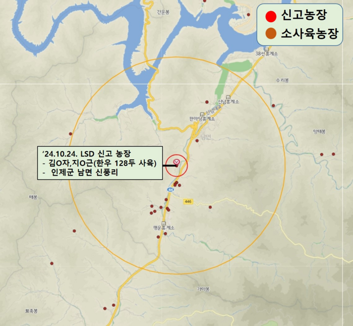 [스포츠서울ㅣ춘천=김기원기자]강원특별자치도는 10월 24일 인제군 남면 소재 한우 농가에서 신고된 럼피스킨 의사환축에 대한 정밀검사를 실시한 결과, 최종 양성으로 확진되었다고 밝혔다.