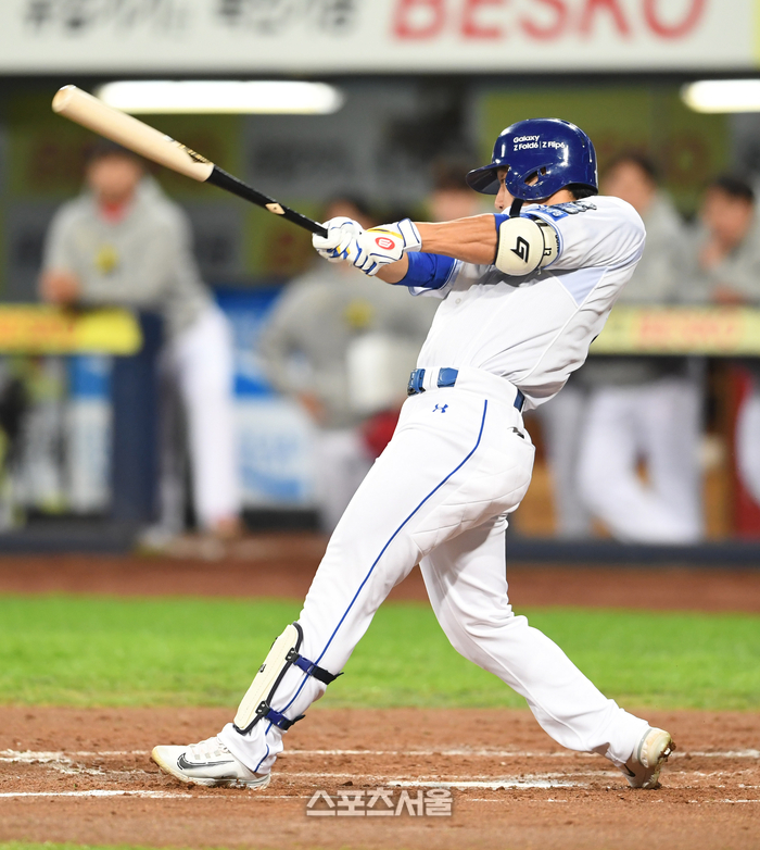삼성 이성규가 25일 대구 삼성라이온즈파크에서 열린 2024 KBO리그 KIA와의 한국시리즈 3차전 3회말 무사 KIA 선발 라우어를 상대로 선제 솔로 홈런을 치고 있다. 2024. 10. 25.