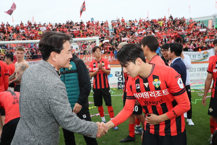 김진태 지사는 “1위 울산을 턱 밑까지 추격하는데 성공한 선수들 너무 고맙다. 다음주 원정에서 울산을 만나는데 후회없는 경기로 k리그 최정상을 가려보자”며 “도민들과 함께 온 힘을 다해 응원할 것”이라고 전의를 불태웠다.