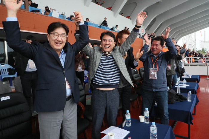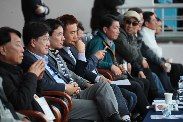 구단주인 김진태 도지사는 경기 종료 후 빙부상 중에도 선발 출전해 경기를 승리로 이끈 김영빈 선수를 위로하고 지난주 득녀를 한 코바체비치 선수에게 축하를 건넸다.