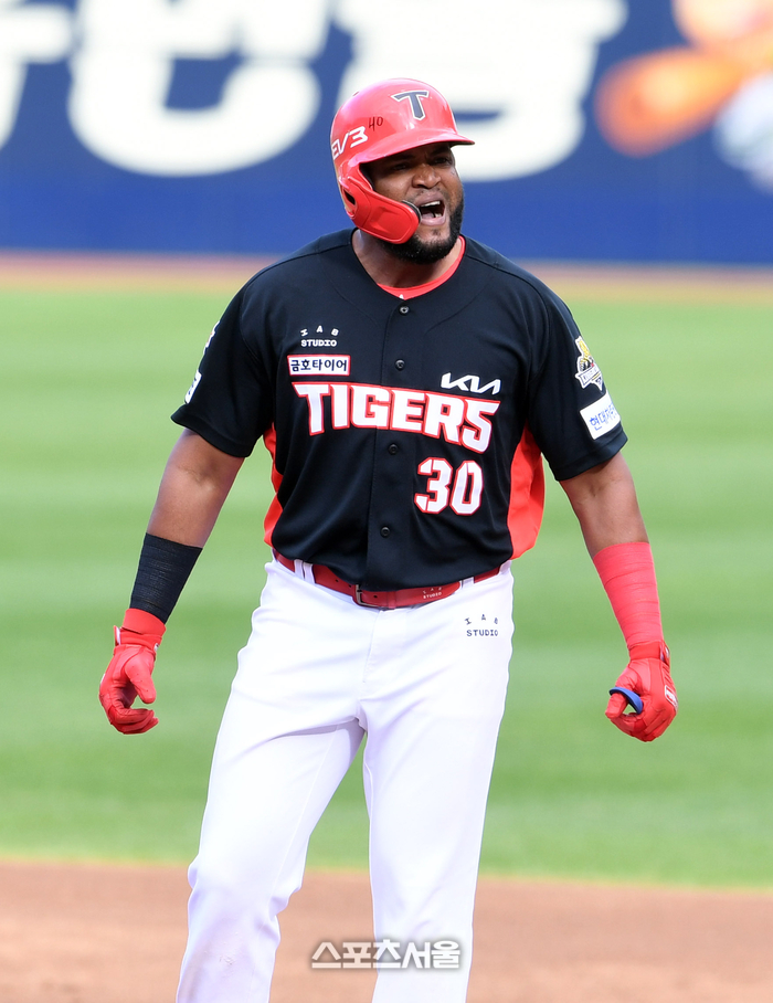 이범호 감독이 7년 전 KIA 선수로 뛰면서 한국시리즈 5차전에서 만루포를 때린 바 있다. 김태군이 이범호 감독 보는 앞에서 당당하게 만루 홈런을 쐈다.