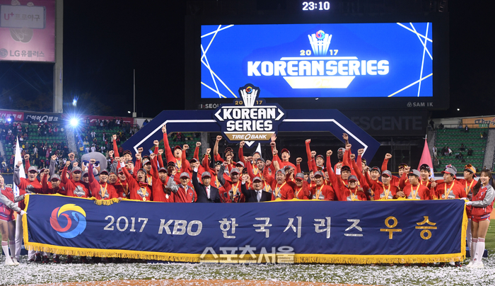 전무후무한 일이다. 우승트로피 한 더즌을 채우는 건, KBO리그에서는 최초의 일이다. 일찌감치 정규시즌 우승을 차지한 뒤 사명을 KIA로 바꾼 이래 세 번의 우승을 모두 통합우승으로 장식하려는 KIA가 ‘안방’ 광주에서 축배를 들 준비를 하고 있다.