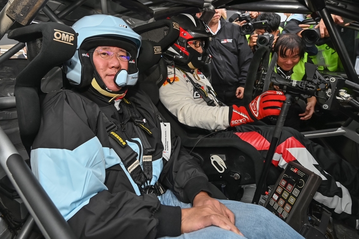 양사 드라이버와 고객들이 직접 운전하며 트랙을 천천히 주행하는 ‘퍼레이드 랩(Parade Lap)’에는 정 회장과 아키오 회장이 선두에 나섰다. 아이오닉 5 N 드리프트 스펙, GR 야리스 랠리 1 하이브리드 차량을 각각 운전하며 행렬을 이끌었다.
