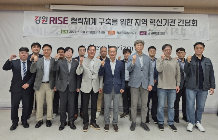 [스포츠서울ㅣ춘천=김기원기자]강원라이즈(RISE)센터(센터장 김학철)는 10월 28일(월) 강원인재원에서 강원특별자치도(도지사 김진태) 및 도내 7개 혁신기관* 관계자 등 30여 명이 참석한 가운데‘강원 지역혁신 중심 대학지원(이하 ‘RISE’) 협력체계 구축을 위한 지역 혁신기관 간담회’를 개최했다.