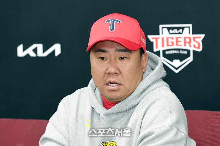 KIA 이범호 감독이 28일 광주-기아 챔피언스필드에서 열린 2024 KBO리그 삼성과의 한국시리즈 5차전에 앞서 취재진과 인터뷰를 하고 있다. 2024. 10. 28.
