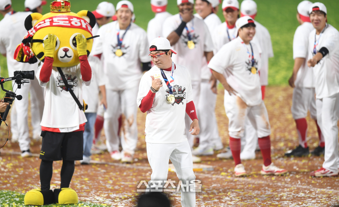 스포츠 | 야구 [포토] 삐끼삐끼 추는 양현종, 눈 가린 호돌이 입력2024-10-28 23:23:12 북마크 페이스북 트위터 SNS 더보기 가글자크기설정 인쇄 SNS 더보기 닫기 네이버밴드 네이버블로그 URL복사 글자크기 설정 메뉴 닫기 글자크기 설정 시 다른 기사의 본문도동일하게 적용됩니다. 가 가 가 가 가 KIA 양현종이 28일 광주-기아 챔피언스 필드에서 열린 한국시리즈 시상식 후 삐끼삐끼 춤을 추고 있다.2024. 10. 28.광주 | 최승섭기자 thunder@sportsseoul.com 기사추천 0