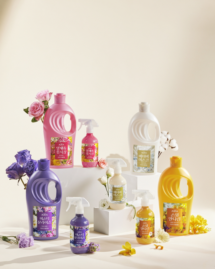 아우라 퍼퓸캡슐 섬유유연제는 아우라가 엄선한 니치 퍼퓸의 향기를 담아 △양재동꽃시장 △스윗만다린 △미스틱문라이즈 △베이비머스크 4종으로 출시했다. 각각의 향기에는 특별한 순간과 공간을 생생하게 느낄 수 있는 스토리를 함께 담아 냈다.